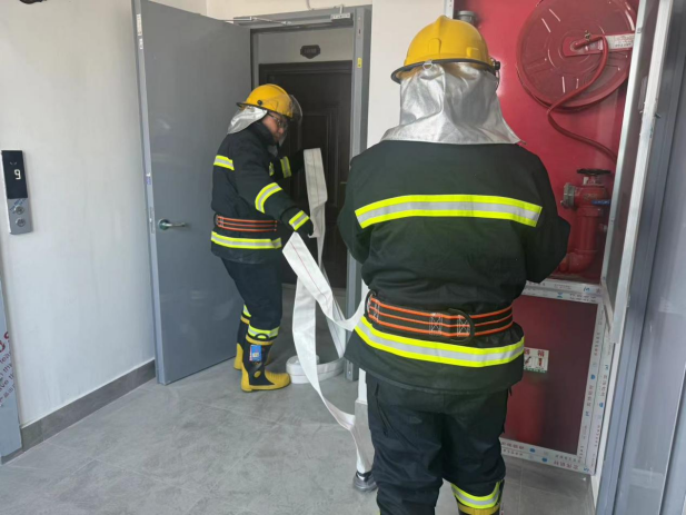 物业经理方峥荣第一时间赶赴现场,指挥协调各部门紧急有序召开救援工作。管家团队拨打119火警电话,同时联系、引导业主抵达开启房门;工程部切断非消防电源,保障救援安全;安保队员在消防队到达前完成水带连接并实施初期扑救。13时10分,消防到达现场,明火已被基本扑灭。物业工作人员全程配合消防部门进行余火清理和隐患排查,保障现场安全。